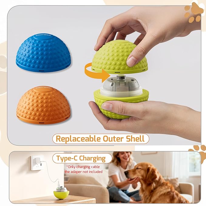- 【Safe & Chew-Resistant Material】The replaceable outer shell is made of durable bite resistance Food-Grade Rubber Material, this interactive dog ball is lightweight, pet-safe, eco-friendly and non-toxic, which rigorously tested to withstand aggressive chewing and intense play, ensuring long-lasting fun for medium and large dogs.