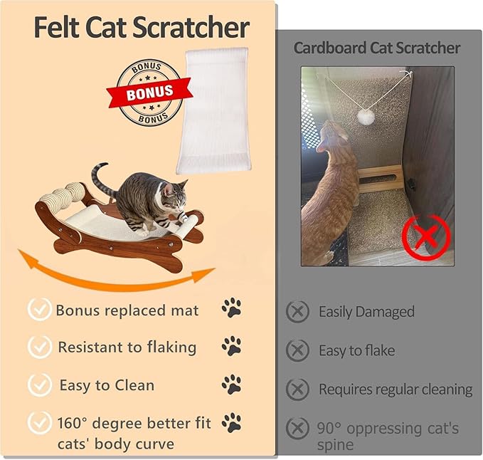 - 【3-in-1 Multifunctional Cat Scratcher Bed】Tired of your furniture falling victim to your cat's claws? We've got you covered! Our cat scratcher bed features a unique design that combines a cat scracther bed, scratch pad, and cat toys into one product. Daily scratching sharpens their claws, maintains the proper shape of their nails, and satisfies their natural instincts.