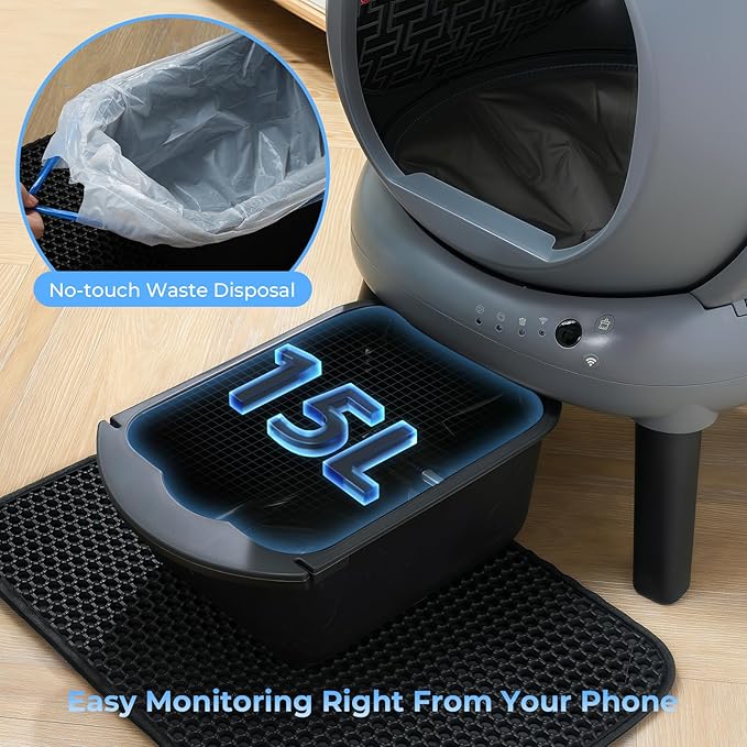 Self Cleaning Litter Box for Cats, Automatic Cat Litter Box with Smart APP Control and Health Monitoring, Includes 2 Roll Trash Bag and Litter Mat, Grey