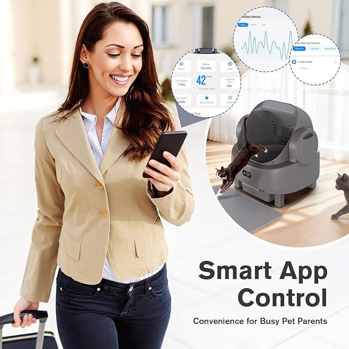 - ๐พ๐ฆ๐บ๐ฎ๐ฟ๐๐ฒ๐ฟ, ๐๐ฎ๐๐๐ฒ๐ฟ ๐ฆ๐ฎ๐ณ๐ฒ๐๐ ๐ฆ๐ฒ๐ป๐๐ผ๐ฟ๐โ๐ฎ๐ฐ/๐ณ ๐ฃ๐ฟ๐ผ๐๐ฒ๐ฐ๐๐ถ๐ผ๐ป ๐ณ๐ผ๐ฟ ๐ฌ๐ผ๐๐ฟ ๐๐ฎ๐: Our infrared and weight sensors team up to keep every cleaning cycle safe and accurate. It pauses the moment your kitty gets close and picks up cleaning once they leave. No hiccups, no skipped cleaningsโjust smooth, safe operation 24/7.