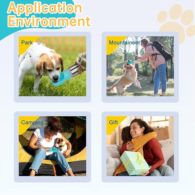 - Best Travel Companion: A portable dog water bottle is a must-have item for pet owners on the go! The unique design is both user-friendly and dog-friendly. It's perfect for long-time drives, road trips, hikes, walks, and outdoor activities.