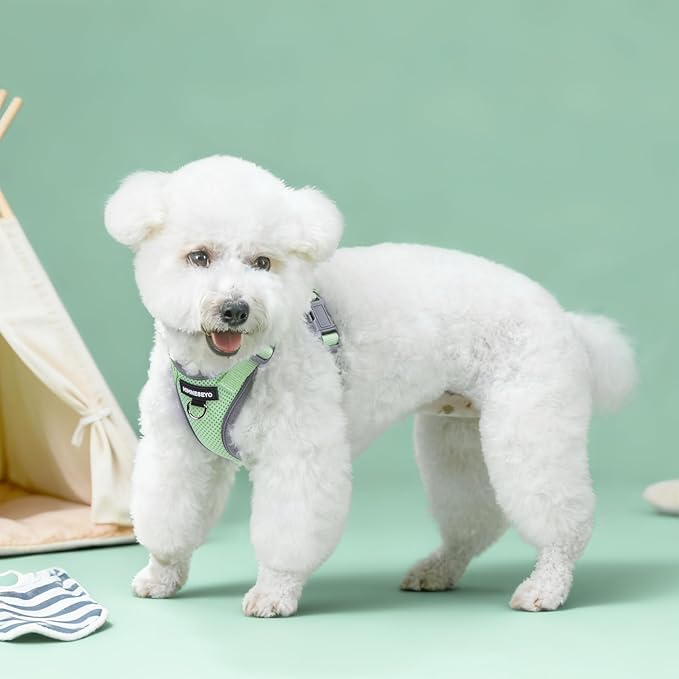 Small Dog Harness and Leash Set, No Pull Adjustable Pet Harness for Small Dogs, Breathable Mesh Rflective Dog Vest Harness (Green, S)