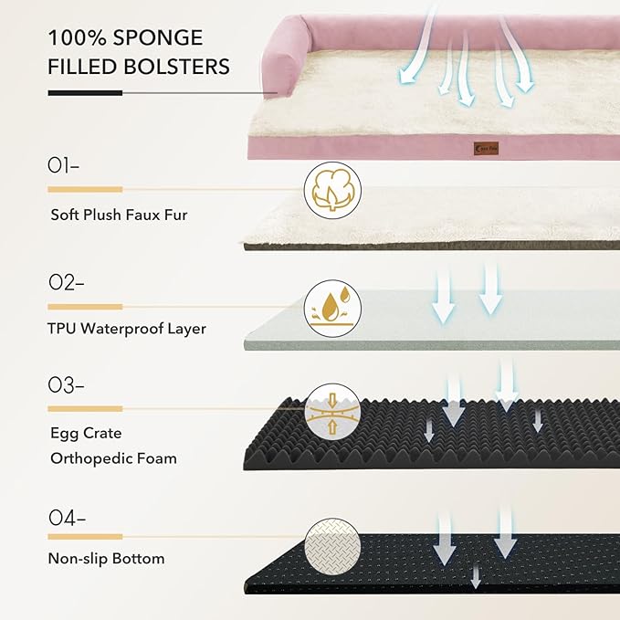 - Enhanced Orthopedic Support: Designed with orthopedic egg-crate foam and supportive bolsters, helping distribute weight evenly and provides the perfect amount of pressure relief and joint support. It is suitable for pets with arthritis, hip dysplasia, joint and muscle stiffness or simply to pamper your puppy that deserves deep sleep.