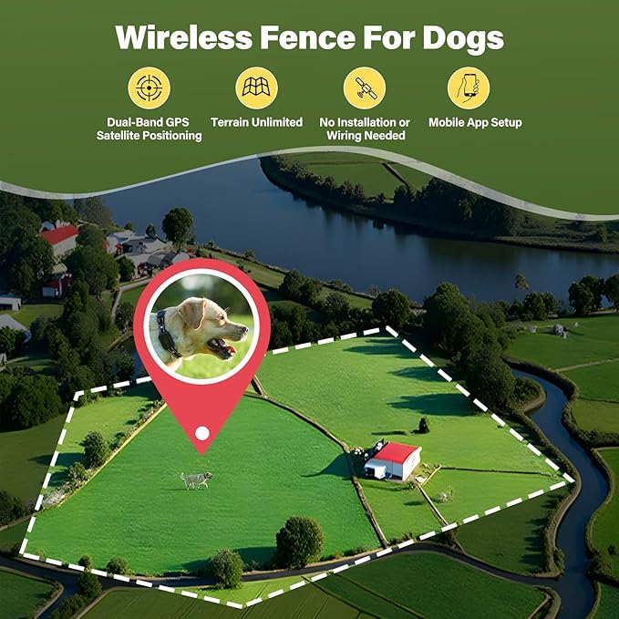 GPS Wireless Dog Fence System - Electric Training Collar with Free App for Dogs (Black)