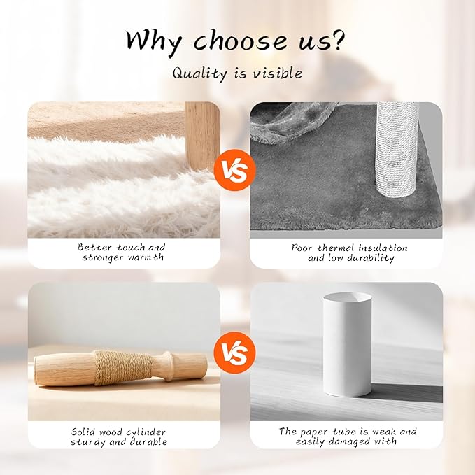 - Natural Sisal Rope: modern cat tower with scratching post Made from natural sisal fiber, wooden cat tree material is highly wear-resistant and perfect for scratching. solid wood cat tree tough enough to withstand your cat's instincts without shedding lots of debris or fluff. This allows your cat to satisfy its need to scratch, mark its territory, and enjoy climbing—all while protecting your sofa and curtains