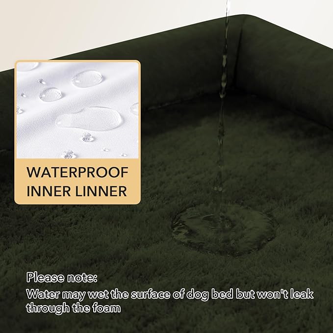 Orthopedic Dog Beds for Extra Large Dogs, Waterproof Egg Crate Foam XL Dog Bed with Sides 41x27Inch, Washable Big Dogs Couch Beds with Removable Cover and Nonskid Bottom, Olive Green