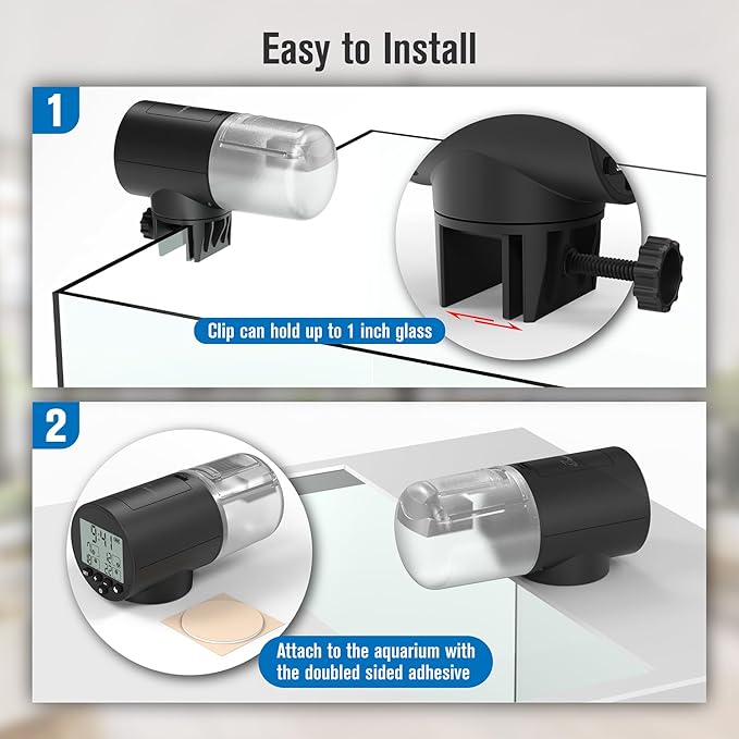 - 【Flexible Mounting Options】 Our package includes clear instructions for the turtle feeder. Once set, refill the food without removing it. Mount the JuzPetz food dispenser by attaching it to the tank glass for easy access or mounting it on the cover for a sleek look.