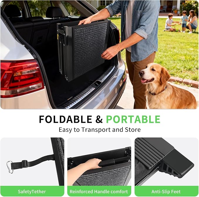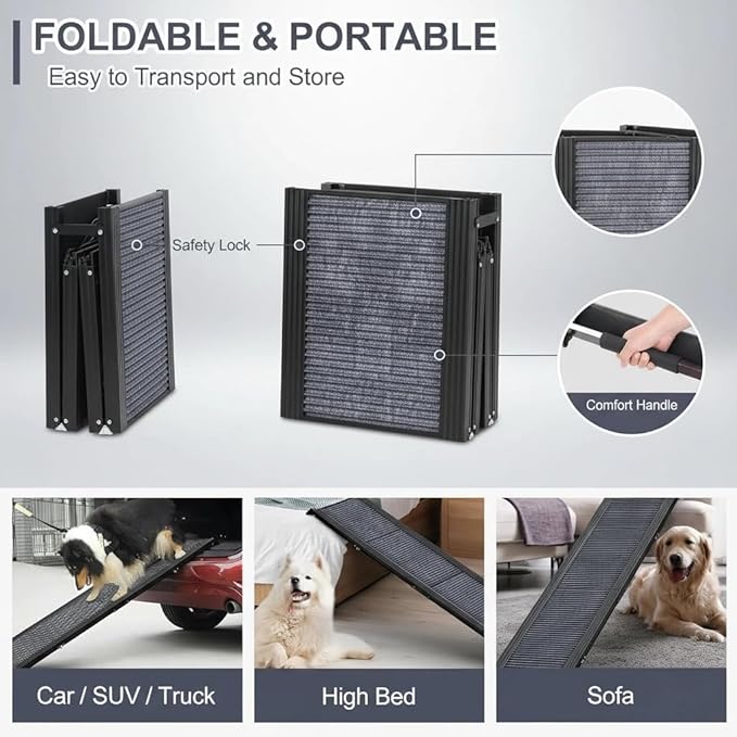 - 【🚗 Multi-Surface Versatility】 - More than just a car ramp! It's the perfect aid for helping your dog access SUVs, trucks, high beds, couches, and more, making it an essential for home and travel.