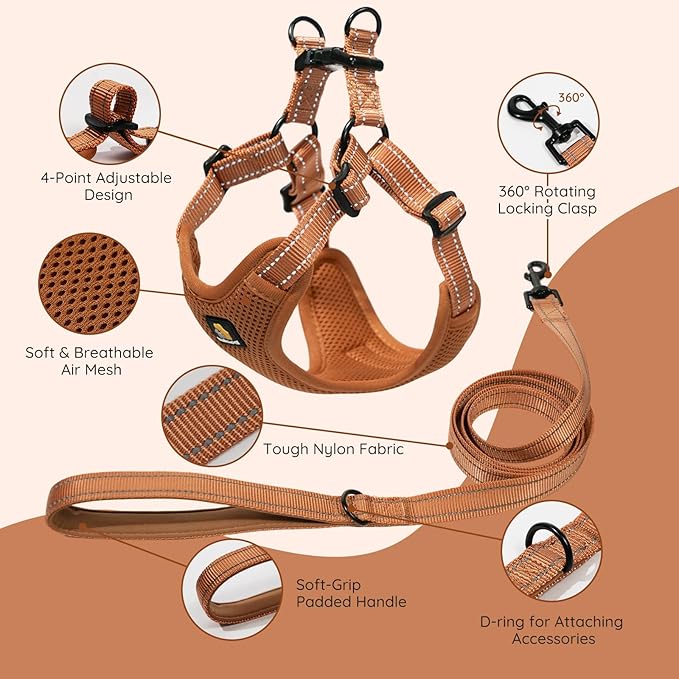 BELLA & PAL Adjustable Step-in Dog Harness, Puppy No-Pull Vest with Leash Set for XS/Small & Medium Dog, Breathable All-Weather Mesh, Reflective Strip, Secure Hook & Loop, Buckle Closure (Mokka, XS)