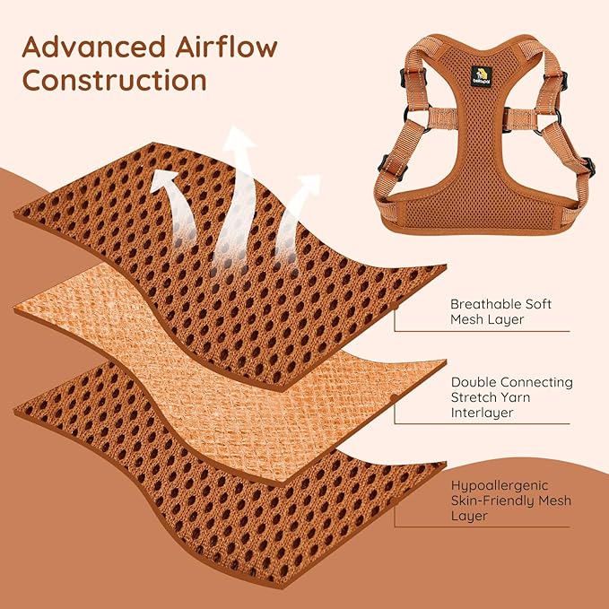 - 【BREATHABLE AIR MESH】Dog harness are made with soft mesh fabric, it’s lightweight but sturdy, easy to clean and quick-dry, suitable for extra-small/small medium dogs.