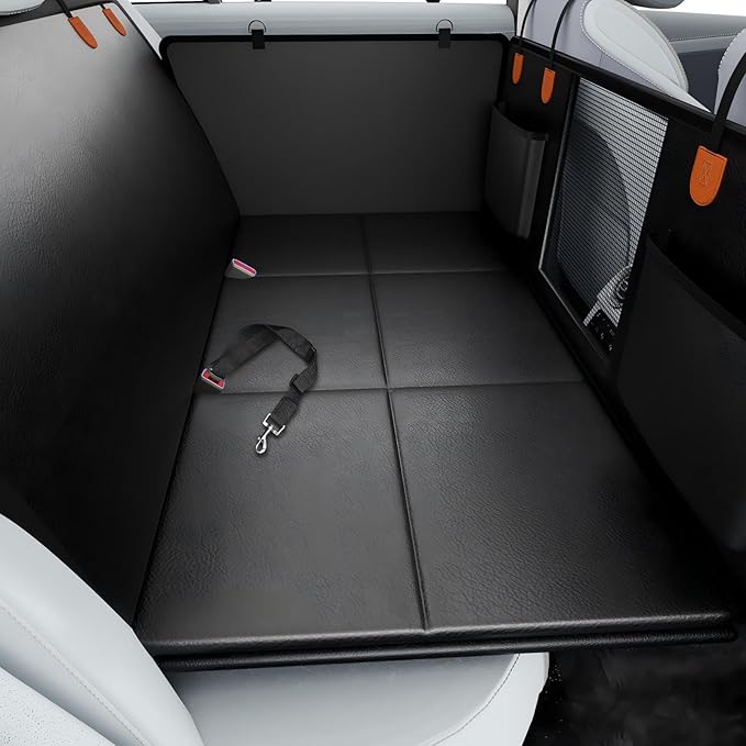 Dog Car Seat Cover for Back Seat with Hard Bottom, PU Leather Back Seat Extender for Dogs,Dog Hammock Bed for Cars, SUVs, Pet Seat Cover for Back Seat Holds 400lbs with Mesh Window & Pocket