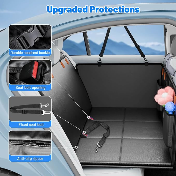 - 【100% Waterproof, Easy Cleaning&Anti-Scratching】No need to worry about your dog's hair, slobber and claws any more. This dog seat cover features durable PU leather and waterproof layer, which keeps your backseat tidier and resist tears, scratches, and stains. Easy to wipe clean or machine wash—it's the ultimate low-maintenance solution for dog parents who love to explore.