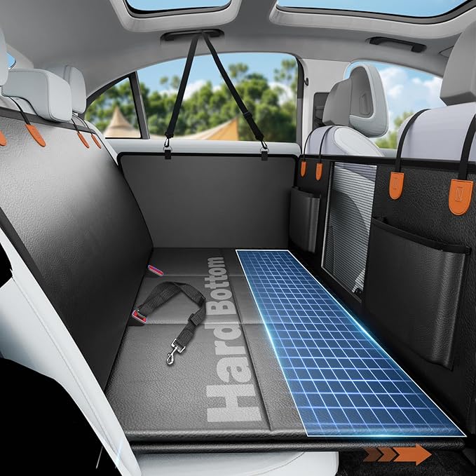 - 【Extra Space, Strong Support】This hard bottom car seat cover for dogs enables complete coverage of the backseat area and features a reinforced load-bearing support board that holds up to 400 lbs, preventing sagging and allowing your dog to walk around or stretch their limbs easily. It solves the space shortage in most standard backseats—ideal for larger breeds or multi-dog families.