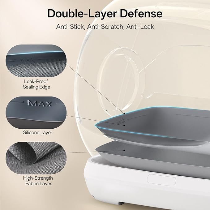 - 🐾 DOUBLE SAFETY PROTECTION: Patented Anti-Pinch Design + 4 Weight Sensors - Featuring our patented one-piece silo structure with zero pinch points, this automatic litter box eliminates gaps where paws or tails could get caught. Combined with four high-sensitivity weight sensors, it pauses instantly when your cat enters—ensuring safe, worry-free use with zero risk of injury.