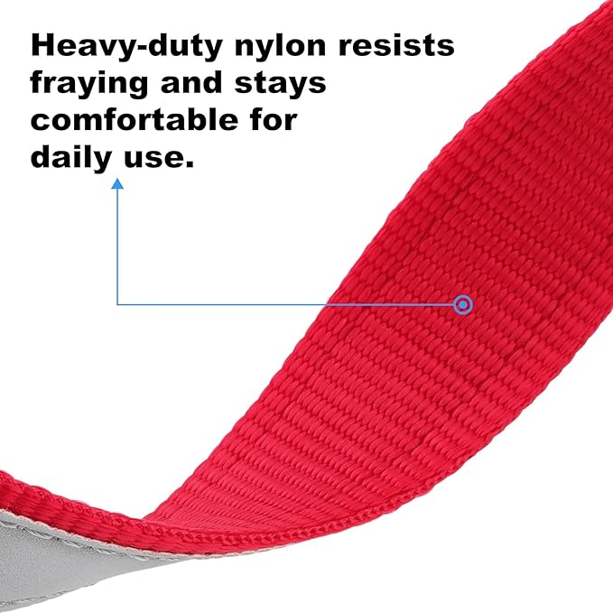 - Woven Nylon – Strong, Smooth, and Reliable. Made from tough yet flexible nylon webbing that holds up to daily adventures without getting stiff. Great for dogs who play hard or pull on the leash