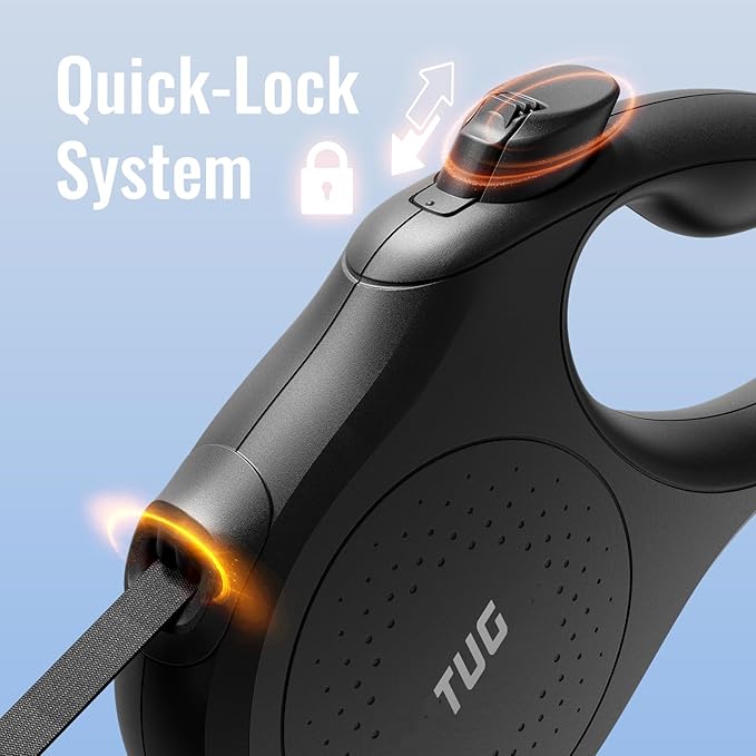 TUG Quest Retractable Dog Leash | 360° Tangle-Free Retraction | 16 ft Strong Nylon Tape (Large, Black)