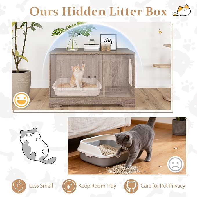 - 3 in 1 Multifunctional Design: The cat furniture features a 3 in 1 design, serving as a cat house, cat litter box enclosure, and storage cabinet. The large countertop offers ample storage space for pet supplies, decorations, magazines and plants.