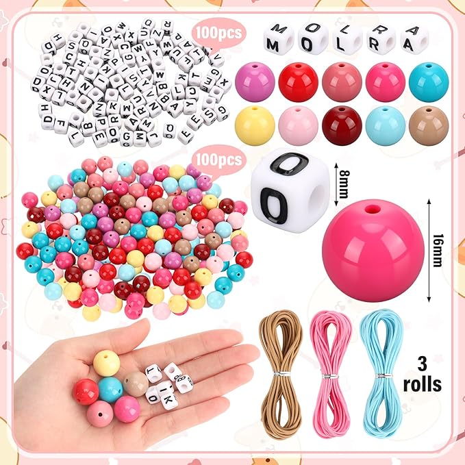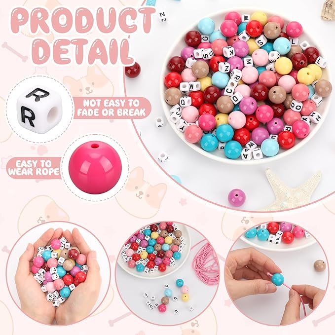 - An Expansive DIY Kit with Everything You Need: the beaded dog collar set is designed to fully unleash your creativity, the package is generously stocked, containing a total of 100 large size letter beads mixed with an assortment of 16 mm beads in 10 colors, with 10 beads of each color, to complete your projects, you also receive three full spools of strong, 2 mm diameter thread in beautiful lake blue, pink, and khaki, each measuring 16.4 ft/ 5 m long