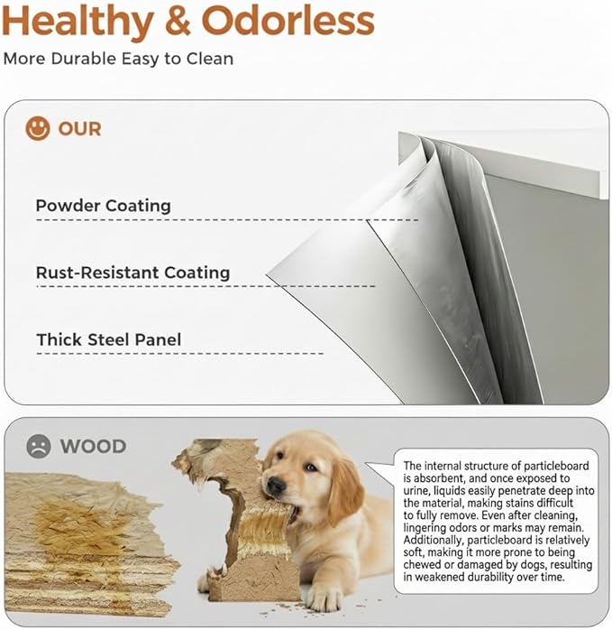 - SUPERIOR DURABILITY & HASSLE-FREE MAINTENANCE: Invest in a truly robust and long-lasting pet furniture solution built to endure. Unlike inferior particleboard alternatives prone to warping and degradation, our hidden litter box cabinet is constructed from premium, moisture-resistant cold-rolled steel. This sturdy steel frame ensures exceptional durable stability and unwavering longevity. Its smooth, non-porous surfaces are effortlessly wiped clean with a damp cloth, simplifying odor control and hygiene.
