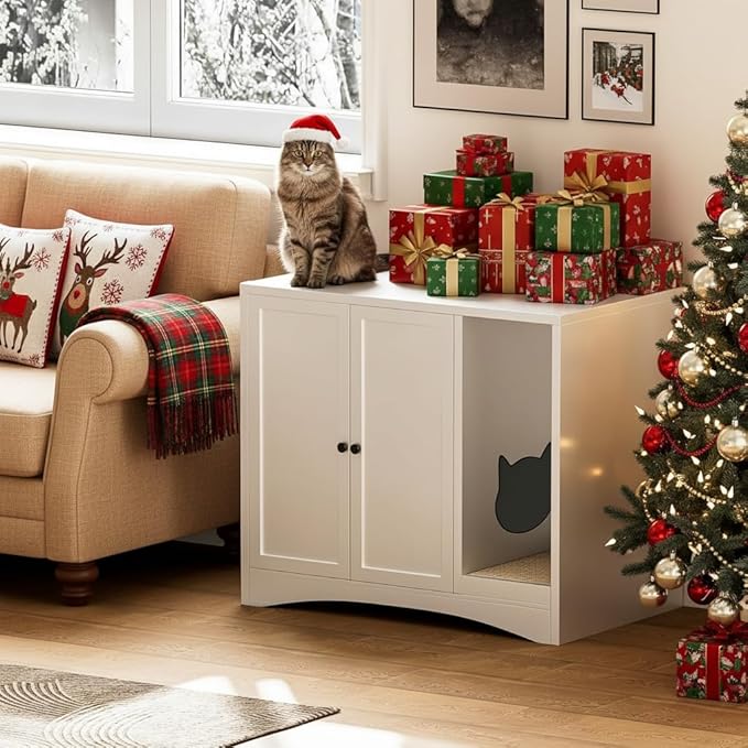 - COMPLETE SOLUTION & SWIFT ASSEMBLY: Receive everything you need for a perfectly tidy and organized cat space right out of the box. This comprehensive hidden litter box cabinet includes two convenient storage hooks for scoopers or waste bags, an integrated exit scraper mat designed to trap stray litter, and two protective corner bumpers for enhanced safety and furniture preservation. With clear, step-by-step instructions and all necessary hardware thoughtfully provided, assembly is remarkably straightforward, typically completed by most customers in just about 30 minutes, allowing your cat to quickly enjoy their comfortable new private space.