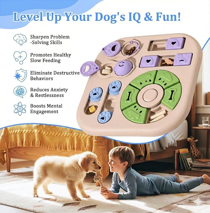 Interactive Dog Puzzle Toy, 4-in-1 Dog Enrichment Toy for Smart Dogs, Advanced Brain Games for Mental Stimulation, Non-Slip Slow Feeder & Treat Dispenser to Reduce Boredom and Destructive Behavior