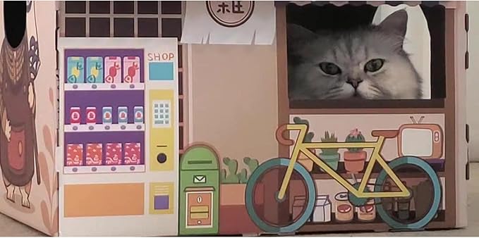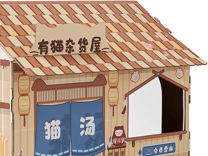 Corrugated Cardboard Cat House with Scratching Pad for Training Toy Cats, Brown