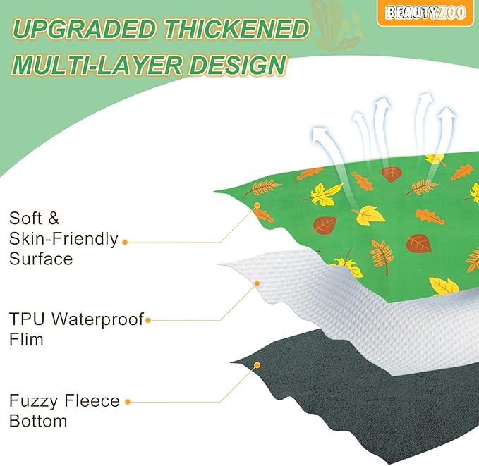 - Ultra Absorbent & Double-Sided Design – Constructed with 3 protective layers: soft printed surface, waterproof TPU lining, and cozy fleece base. These fleece liners for guinea pig cages effectively soak up daily messes and lock in moisture, helping keep floors and cages clean and dry. The fleece base allows double-sided use, making it a practical choice for longer use and less frequent washing