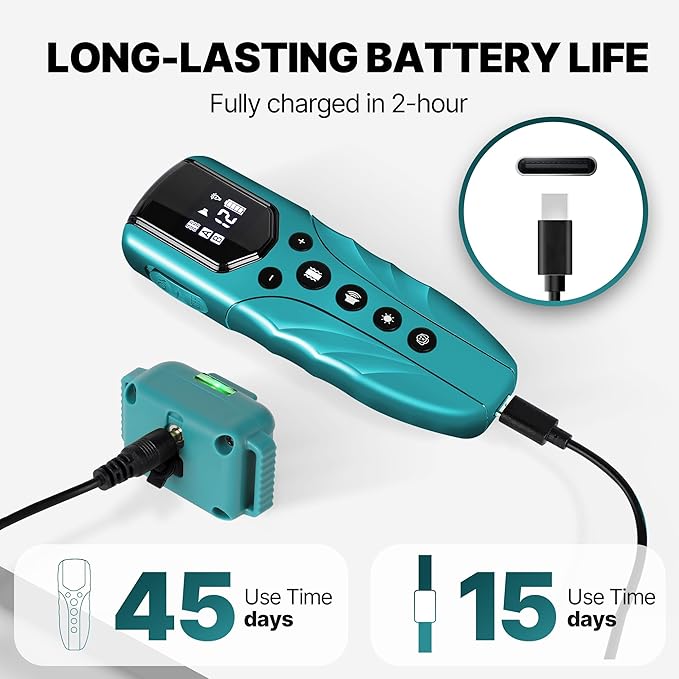 - 【Long-Lasting Rechargeable】Designed with user convenience in mind, the remote control features a blind layout and an ergonomic, streamlined shape. The built-in lithium ion charges fully in just 2 hours and provides up to 15 days of standby time for the receiver and up to 45 days for the remote control.