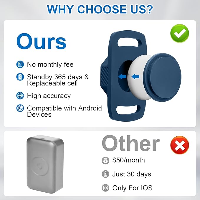 - No Monthly Fee: Our tracker with holder is free of any subscription or monthly fee, simply download the free app to track your pet. (Note: Only compatible with Android, Not for IOS)