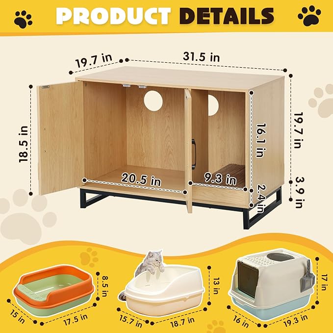 - 【Furniture Style, Wider Usage】Sturdy frame and warm tabletop design matches your home decor perfectly. It is not only a litter box enclosure, but also can be used as a cat house. Meanwhile, thanks to its stylish furniture style, you can also use it as a TV stand or a coffee table next to the sofa!