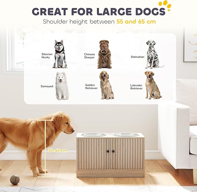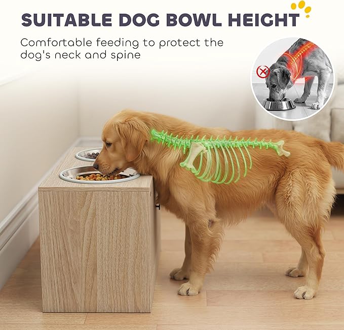 - Stable Structure: Thickened particleboard and slip-resistant feet offer peace of mind, keeping the pet feeding station steady for overly enthusiastic dogs and protecting your floors from scratches