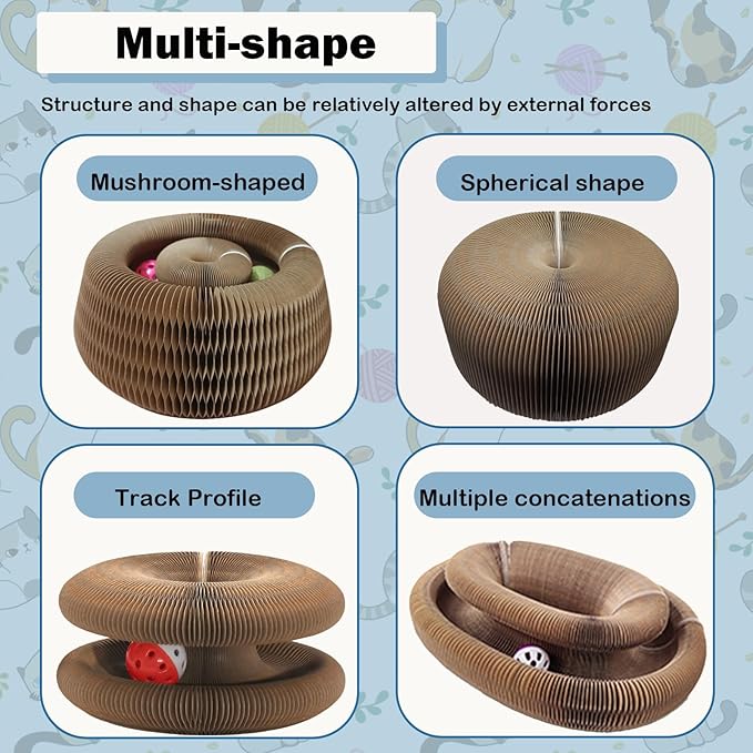 - Magic Organ Cat Toy: This kitten toy consist of a track with a bell ball and a catnip ball, which are perfect for cats to play with, allowing them to freely track and grab the ball, satisfying their innate instinct to grab the ball. The ever-changing organ cat scratching board toy surrounds the bell ball, so cats can no longer resist revealing their true nature, sparking their interest and bringing freshness.