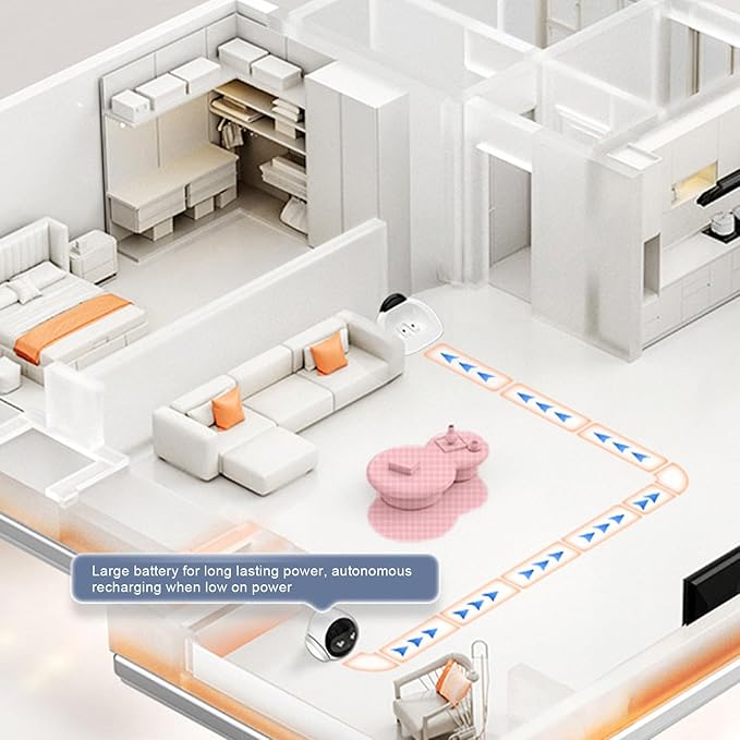 - 【Intelligent Operating and Status Notification】This smart pet camera is equipped with motion detection function and will send application notifications to remind you of your pet activities and various situations. Powered by rechargeable batteries, when the battery power is low, it will automatically return to the charging dock through intelligent infrared scanning sensor technology to ensure that it is always prepared to perform the next monitoring task.