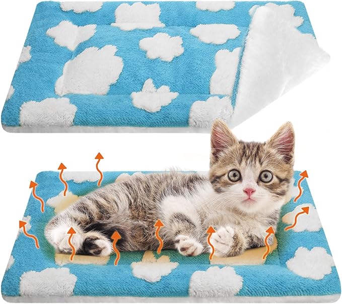 - Self Warming: our self heating cat crate pad uses self heating technology to capture your pet's body heat and dissipate it back, effectively helping your pet stay warm without electricity; No plugs or electricity required, much safer; Suitable for both indoor and outdoor pets to nap the day away
