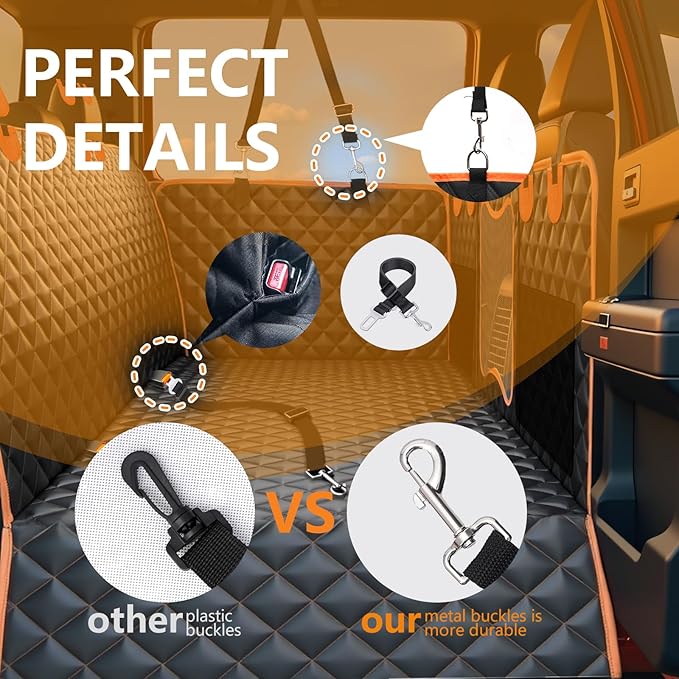 - Waterproof & Anti-Slip Design:Crafted using an advanced heat-pressing process with 7 layers of materials, including 600D Oxford fabric and 210D Oxford fabric, Our back seat cover provides superior waterproof protection. The anti-slip bottom ensures your dog won’t slide off during the ride.