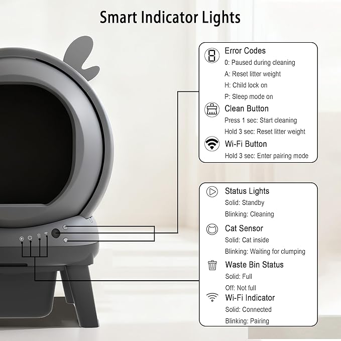 - No Leaks, No Odors, No Stray Litter: The automatic litter box is engineered to keep everything inside the cat litter box. A one-piece ABS construction, sealed litter mat, and fully enclosed waste bin work together to block leaks and lock in odors. Added anti-leak strips offer extra protection—so your floors stay spotless and your air stays fresh.