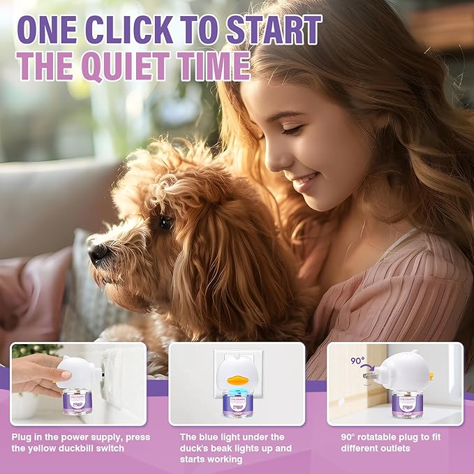 - [Two-week Effect, Long-lasting Protection] When your dog is surrounded by anxiety and tension, dog pheromones calming diffuser will be your caring assistant. Dog calming diffuser's unique pheromone technology can effectively calm 90% of dogs within two weeks. Pheromone diffuser for dogs creates a comfortable and safe environment for dogs. Dog diffuser calming helps your pet regain inner peace and stay away from the troubles of problem tremors, anxiety and destructive chewing