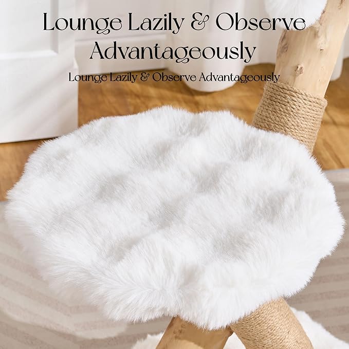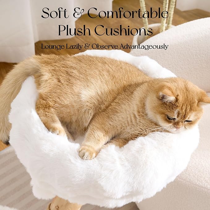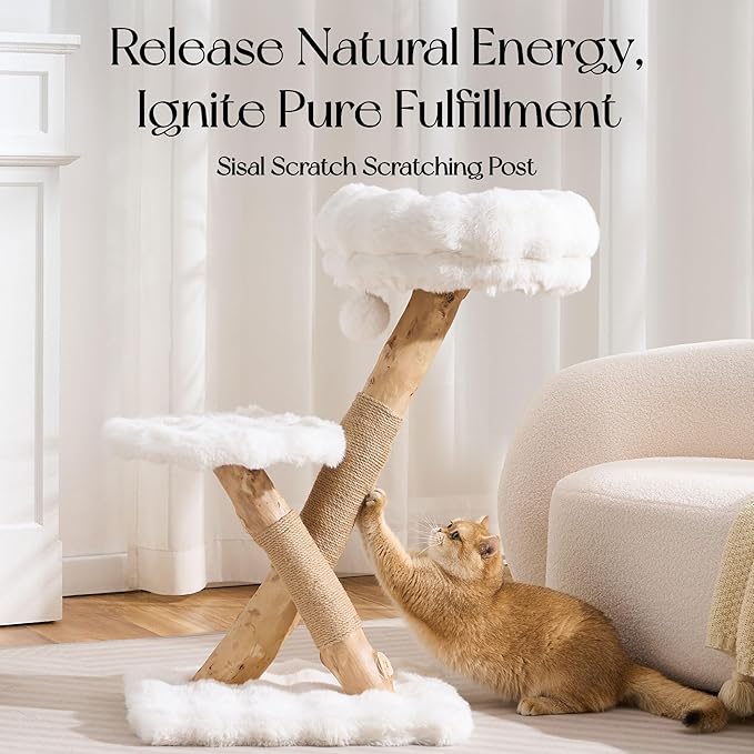 - 🐱100% Real Natural Wood Construction: Expertly crafted from premium European pear wood, this cat tree offers lasting durability and the subtle aroma of a forest. Each post is hand-wrapped in natural sisal rope, providing a safe and satisfying scratching surface.