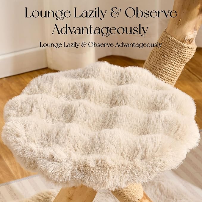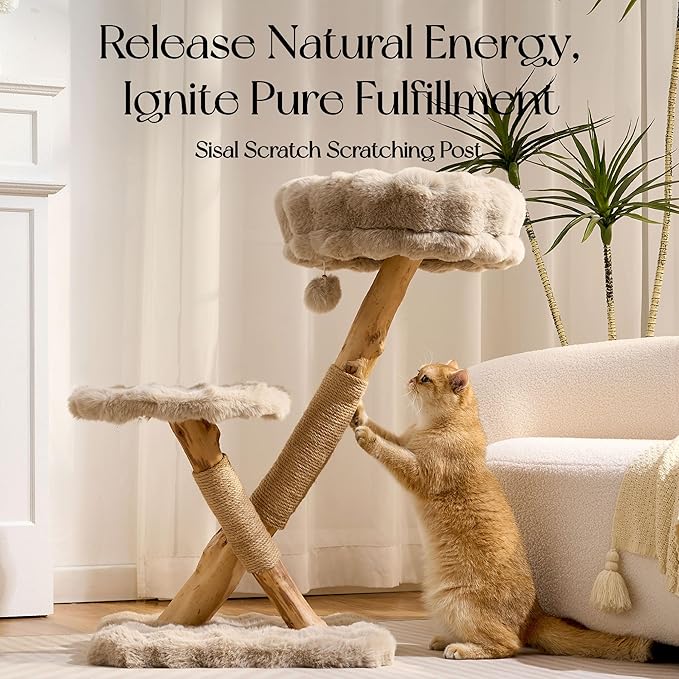 - 🐱100% Real Natural Wood Construction: Expertly crafted from premium European pear wood, this cat tree offers lasting durability and the subtle aroma of a forest. Each post is hand-wrapped in natural sisal rope, providing a safe and satisfying scratching surface.