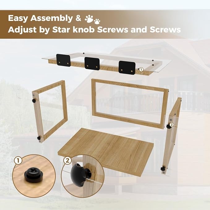 - 【Panoramic View with Enclosed Design】The solid wood base offers comfort and security, while the transparent acrylic panels allow for a wide viewing area. The enclosed design helps keep insects out, enabling cats to enjoy fresh air safely.