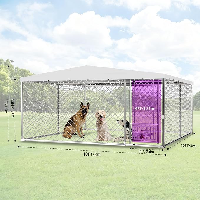 - 【Spacious Design】 The dog kennel measures 120" x 120" x 60", making it ideal for small, medium, and large breeds, accommodating all types of dogs. Its spacious interior allows your beloved pet to safely enjoy outdoor activities within the outdoor enclosure.