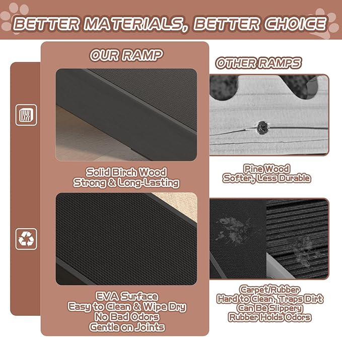 - Extra-Wide & Non-Slip Surface Your small dog will climb with confidence on this wider dog ramp for small dogs. The high-traction EVA surface provides comfort and stability, protecting joints while preventing slips. It’s also easy to clean and maintains a pet-friendly feel.