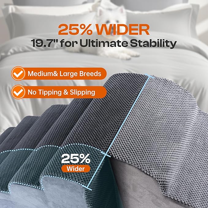 - ANTI-SLIP GRIP SURFACE – Textured fabric helps paws grip each step for steadier climbs, especially for small or senior dogs.