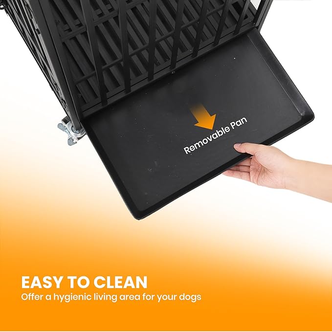 - HASSLE-FREE CLEANING - Includes a quick-release slide-out tray that collects debris, hair, and accidents. Made of durable, waterproof material, it wipes clean in seconds—no tools required. Ideal for busy pet owners seeking a low-maintenance crate for daily use in indoor or outdoor settings.