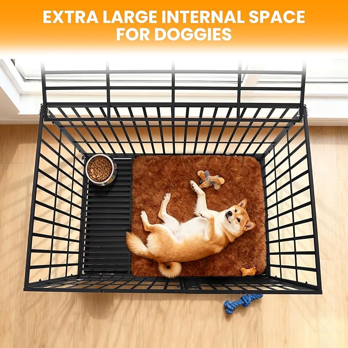 - HEAVY-DUTY CONSTRUCTION - Built with 0.6-inch thickened, anti-corrosion steel tubes and a multi-layer protective coating (bite-resistant and non-toxic), this metal dog crate outperforms standard wire cages. It withstands chewing, scratching, and aggressive behavior, making it suitable for large breeds like German Shepherds or Huskies.