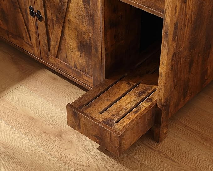 Large Cat Litter Box Enclosure with Litter Collector,Cat Litter Enclosure for Self-Cleaning Litter Boxes,Adjustable Shelf for Dog Proof,Power Outlet,Wooden Cat House,Brown Rustic