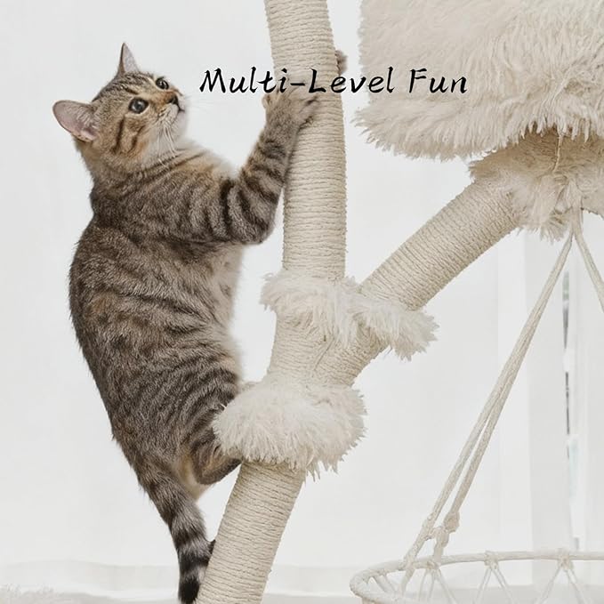 - BEAUTIFUL MULTI LEVEL DESIGN: Modern Multi-Level Cat Tree sturdy base ensures the cat tree won't tip over easily, even with cats playing vigorously around it. Modern Cat Tree Multiple platforms are strategically arranged at varying heights and directions, encouraging cats to jump, explore, move between levels, and stay active. connecting all layers to create an all-in-one space for climbing, scratching, leaping, hiding, and resting