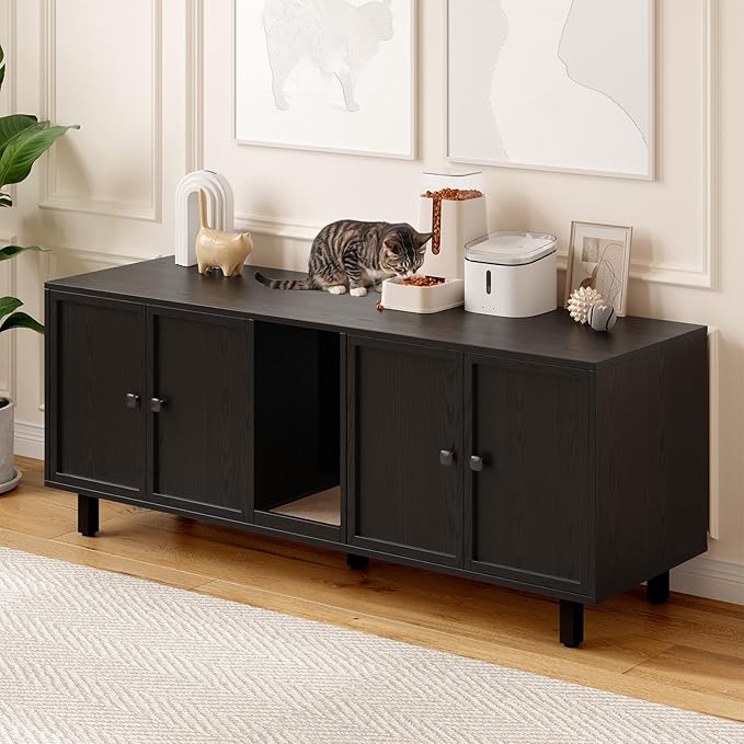 - All-in-One Furniture: Our large wooden litter box enclosure serves as both a cat house and a private enclosed space for litter needs. It blocks dogs from accessing the litter box while doubling as a TV stand, side table, or decorative furniture that blends seamlessly with home decor
