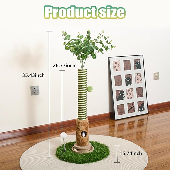 - Perfect Size for All Cats (Kittens to Adults): Features a stable 15.7-inch diameter circular faux-plant base for anti-tip support. The main cat tree stands 27 inches tall, with a total height of 35 inches including integrated branches and foliage—offering ample vertical space for stretching, scratching, and perching. Designed to fit both playful kittens and relaxed adult cats, it adapts to their growing needs.