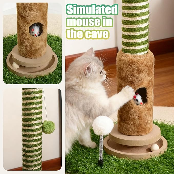 Cat Scratching Post, 35-inch Tall Cat Tree Tower - Premium Sisal Rope with Interactive Track Ball, Hand-Cranked Bell & Realistic Mouse Hole | Perfect for Kittens & Adult Indoor Cats